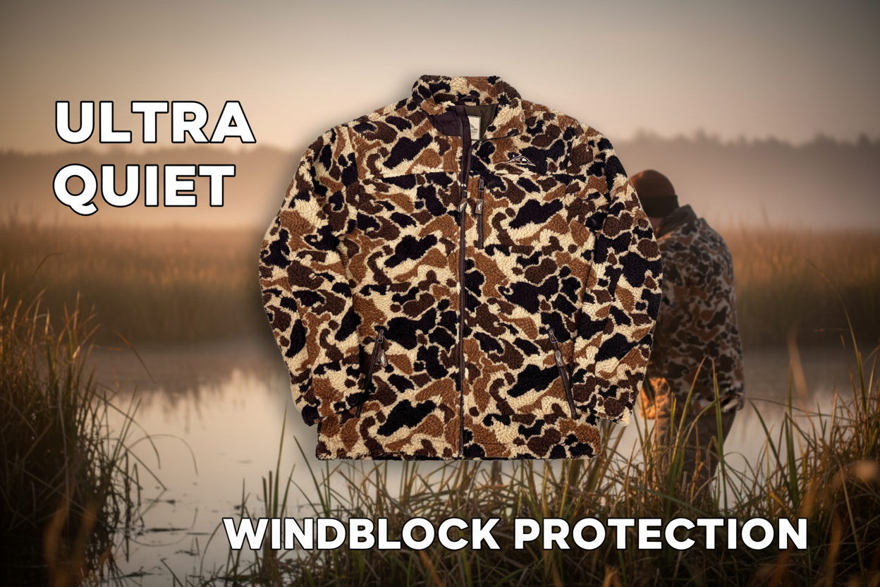Experience premium protection in unpredictable weather with the AFW Full Zip Ultra Quiet OSC Sherpa Fleece Jacket, now featuring an integrated windblock liner. This jacket combines a plush sherpa fleece interior with a windproof barrier to shield you from harsh conditions while maintaining complete silence in the marsh. The full zip construction gives you versatile layering options, letting you adapt to changing temperatures throughout your hunt. Built for waterfowl enthusiasts who refuse to compromise on warmth, quiet performance, or durability, this jacket is your reliable companion season after season.