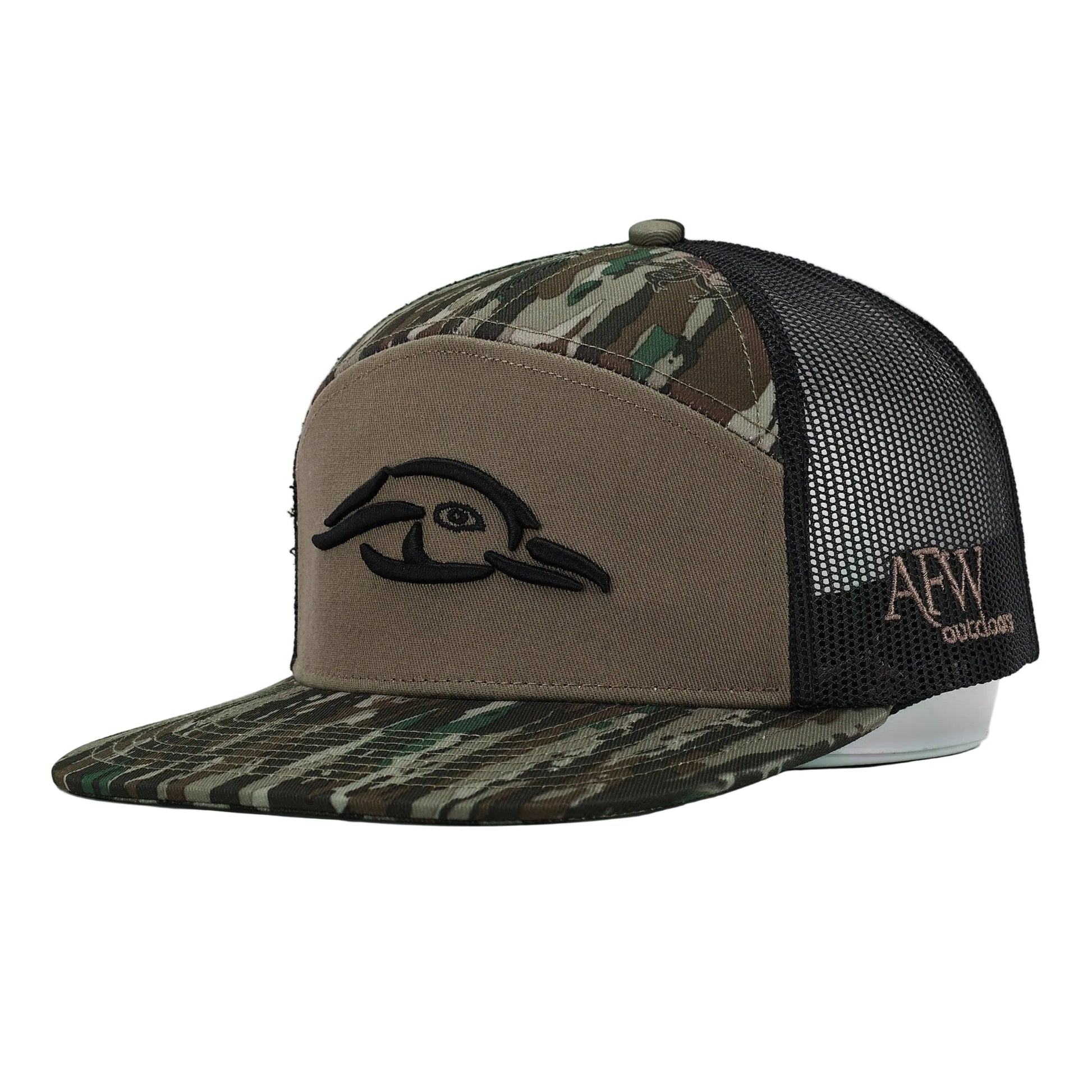 This Realtree Original 7 Panel Duck Logo Hat is perfect for outdoor enthusiasts, blending style and function. Made from Realtree Original Camo fabric, it features a duck logo, representing resilience and adaptability. With its durable material and unique design, this hat is perfect for any adventure.