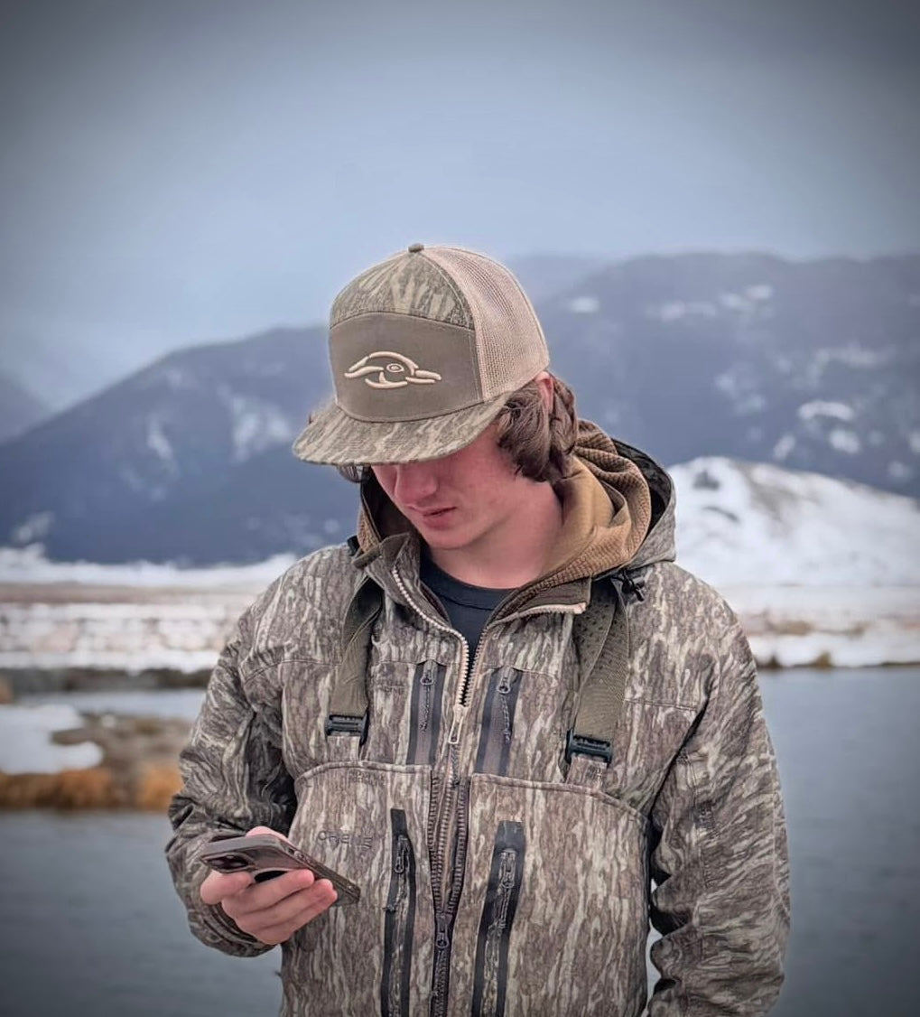 Upgrade your outdoor gear with our Mossy Oak New Bottomland & Sage Duck Logo 7 Panel Cap. Made with durable materials and featuring the iconic Mossy Oak pattern, this cap offers both style and functionality. Perfect for hunting or everyday wear, stay protected and blend in with your surroundings.